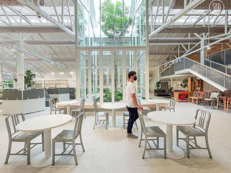 โกดังขาวเรียบเท่ที่โอบล้อมต้นไม้สีเขียวเย็นตา ในซอยสุขุมวิท 26 แห่งนี้คือ multi-purpose space ใหม่เอี่ยมของ Chanintr Living (ชนินทร์ ลิฟวิ่ง) หนึ่งในเจ้าตลาดเฟอร์นิเจอร์อิมพอร์ตของไทย