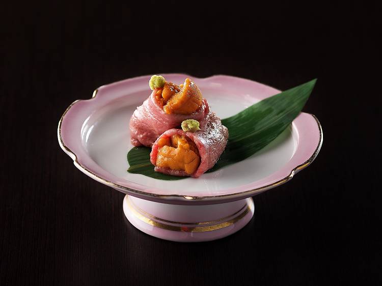 1. Shikigiku - grilled Kagoshima beef with sea urchin