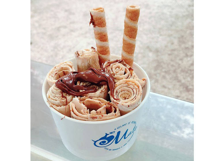After London and New York, Thai ice creams have now arrived to Cascais. António Dias and Ricardo Paulos are partners at HeyMate, an ice cream parlour in Casa da Guia, one of Cascais’ coolest places to enjoy a dessert at. Flavours include a chocolate explosion (Nutella and Oreo being part of it), pastel de nata (custard tart) and lemon with white chocolate. The ice creams are made in front of the customers, using a -20oC board.