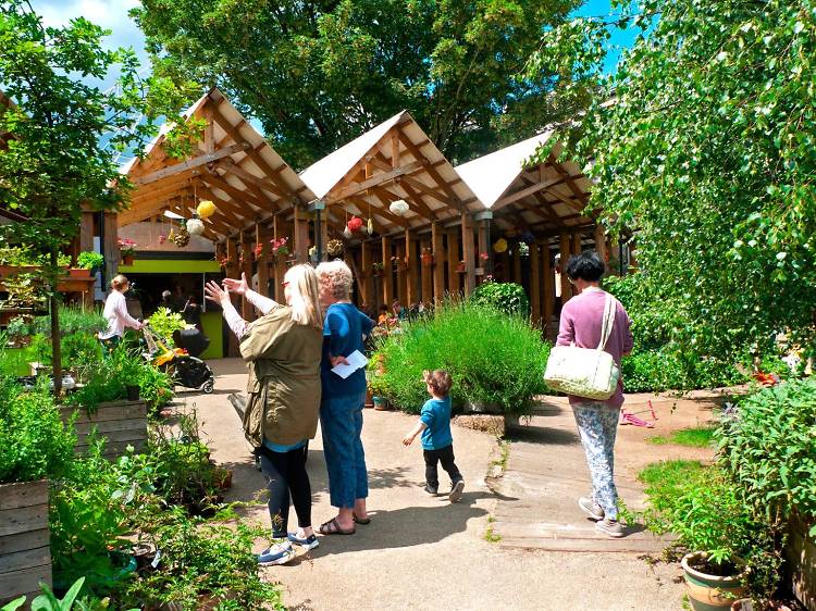 Duck in to Dalston Eastern Curve Garden. At this community space and urban oasis you can learn to garden, eat pizza, drink wine, hear live music or just enjoy the peaceful greenery.