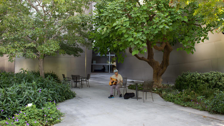 It’s impossible to cruise along Grand Avenue and miss the Walt Disney Concert Hall, a twisted metallic explosion of Frank Gehry’s imagination—one of the top Los Angeles attractions and clearly one of the most beautiful buildings in Los Angeles. You may not realize, though, that the acoustically impressive hall harbors a lush garden in its shadows. Whether you're looking for a quiet place to sit on your lunch hour or a climb along the building's lustrous exterior, it's the perfect spot to both appreciate and escape the city.