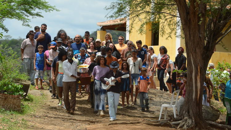 ‘Bacurau’, the opening credits note, is set ‘a few years from now’ – although there’s little that’s futuristic in evidence. The town is a tight-knit community in the scrubby sertão of the country’s remote northeast, cut off and mostly self-sufficient. The film opens with the town mourning the death of the local matriarch, Carmelita, grousing about the corrupt authorities and gossiping about Lunga, a local outlaw holed up nearby. The place is big enough to have its own DJ but small enough for him to address the inhabitants individually during his alfresco broadcasts.