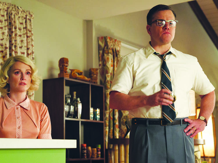 Meanwhile – and far more interestingly – a black family, the Meyers, has moved into the house next door, to the shock of the mailman and pretty much everyone else in the film’s square 1959. The lily-white community goes ape, assembling in the street with protest signs and torches and eventually getting violent. (This section is partly inspired by a real-life conflict that ruined a quiet block in Pennsylvania.) But why cast the dignified Karimah Westbrook as Mrs Meyers if you’re not going to give her a defiant speech or two? Whenever we cut away from this pressure cooker of a situation, you can hear some distant studio executive sighing in relief: finally, let’s get back to Matt Damon pedaling furiously on a kid’s bicycle.