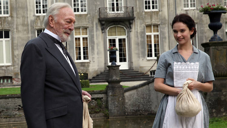 Love blossoms during WWII in this film based on Alan Judd’s novel ‘The Kaiser’s Last Kiss’, a fictional story in a historical setting. Lily James is Mieke, a spirited young servant working in the grand household of Kaiser Wilhelm II (Christopher Plummer, on comfortable territory). Despite the opulence of his home, Wilhelm is living in exile, in Holland, and the German authorities fear a Dutch spy is watching him and reporting to the British.