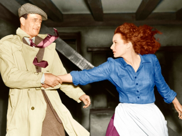 Ford's flamboyantly Oirish romantic comedy hides a few tough ironies deep in its mistily nostalgic recreation of an exile's dream. But the illusion/reality theme underlying immigrant boxer Wayne's return from America to County Galway - there to become involved in a Taming of the Shrew courtship of flame-haired O'Hara, and a marathon donnybrook with her truculent, dowry-withholding brother McLaglen - is soon swamped within a vibrant community of stage-Irish 'types'. Ford once described it gnomically as 'the sexiest picture ever made'.