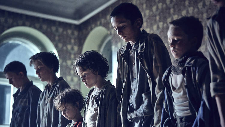 It’s Poland, February 1945: the Germans are on the verge of defeat, and the inmates of the Gross-Rosen concentration camp have been liberated by the Russians, who will soon succeed the Nazis as the country’s oppressive occupying force. Left to their own devices, eight children take refuge in a dilapidated orphanage, where they find themselves surrounded by the vicious attack dogs (the title is metaphorical) abandoned by the fleeing Nazis. As hunger and thirst start to bite, the children face another bloody battle for survival as the ravenous dogs – and other dangers – stalk their prey.
