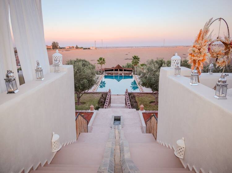 One inclusion is Villa Shems Moon, a stunning home in the mountain village of Tameslouht, which is just a short drive from Marrakech. The property has a whopping 18 bedrooms, sleeping up to 38 guests. Massive group trip, anyone?