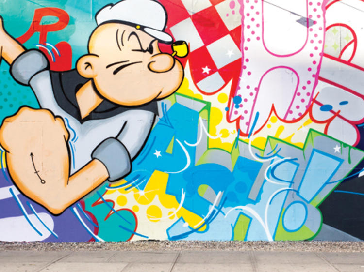 One of NYC’s many pleasures is turning a corner to find a street-art mural taking up an entire wall, or spotting a piece by your favorite artist. Enjoy more of these moments with our guide to the best places to see street art and graffiti—from the best curated walls to art galleries, alternative spaces and walking tours. Plus, gain a new understanding of what you’re seeing with our breakdown of common styles of street art, a brief history of the discipline in New York and a behind-the-scenes look at the creation of a giant mural in Brooklyn.—Edited by Jonathan Shannon