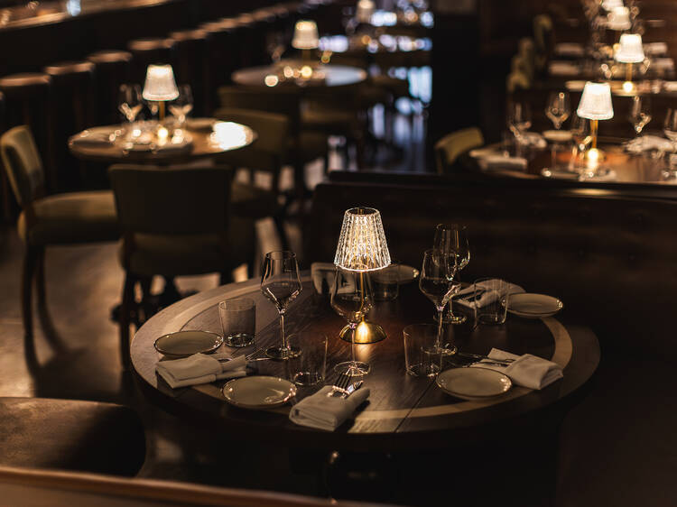 The opening menu aims to meet the interior’s intended Old New York aesthetic with “nostalgic, French American bistro fare,” per a press release, with baked fromage, escargots, pigs in a blanket, steak frites and caviar service. A “very dry” dirty martini and an espresso martini for that nitrogen to swirl in number among the cocktails.