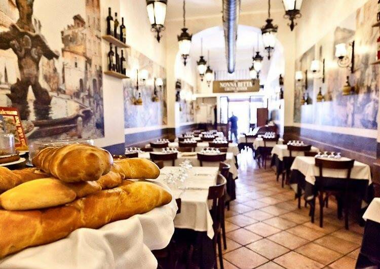 A distinctive Roman-Jewish cuisine arose in Rome because of a Papal edict that established an isolated Ghetto next to the Tiber river in 1555. Today, the area known as the Quartiere Ebraico is an exclusive enclave filled with traditional kosher restaurants like Nonna Betta. Decorated with painted scenes of neighborhood life in the 1800s, the eatery is named for the owner’s grandmother and stays true to its home cooking origins. The fried artichokes are outstanding, as is the gricia alla giudea which uses artichokes instead of bacon to create a kosher version of the typical Roman pasta.