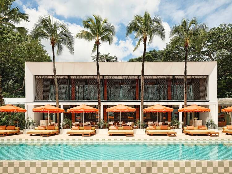 Expect vibrant terracotta hues and bright yellows in the space, reminiscent of the summery landscapes of Miami and Palm Springs. And in a dedicated space near the entrance, you’ll find the beach shop, curated by Kaia Nelk of local furniture shop Studio Yono. Browse beach and homeware essentials by local and international brands, from Greek swimwear label Kiohne, to bottle bags from Singaporean textile studio Tanchen, and cool shirts and accessories from the Bali-based Haik Mosi Mosi.