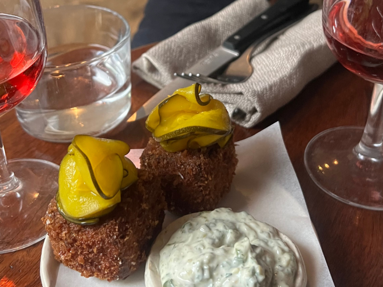 August 2025 update: Three things are front and center at Bar Copains, the eternally pumping wine bar on the corner of Albion Street in Surry Hills. And those are extremely delicious plates of food, a strong wine list and all-round good times. Sure, it’s hard to get a seat, but if you do, those crisp nuggets of shredded pork topped with a zingy sauce gribiche and pickles will make all the effort worthwhile. I mean, I love Bar Copains so much I came here on my most recent birthday. Make sure you also check out its sibling venues Bessie's and Vin-Cenzo's. But come here first.
