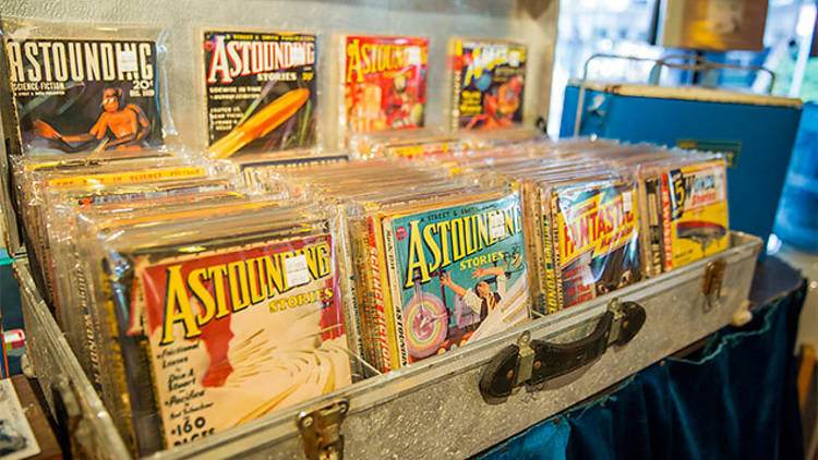 If you’re just here for a copy of King Lear or that Collins German Dictionary (whatever’s on the university shopping list), do yourself a favour and try those headphones attached to the record player – you might hear something you like. While you’re there, sift through the cellophane-wrapped comics like Famous Fantastic Mysteries from 1940 or Science Fiction Planet of the Knob Heads, $25 and $40 respectively. For the truly skint, stick to the boxes outside marked ‘$5’. Last we checked there was an Idiot’s Guide to the Internet going for grabs.
