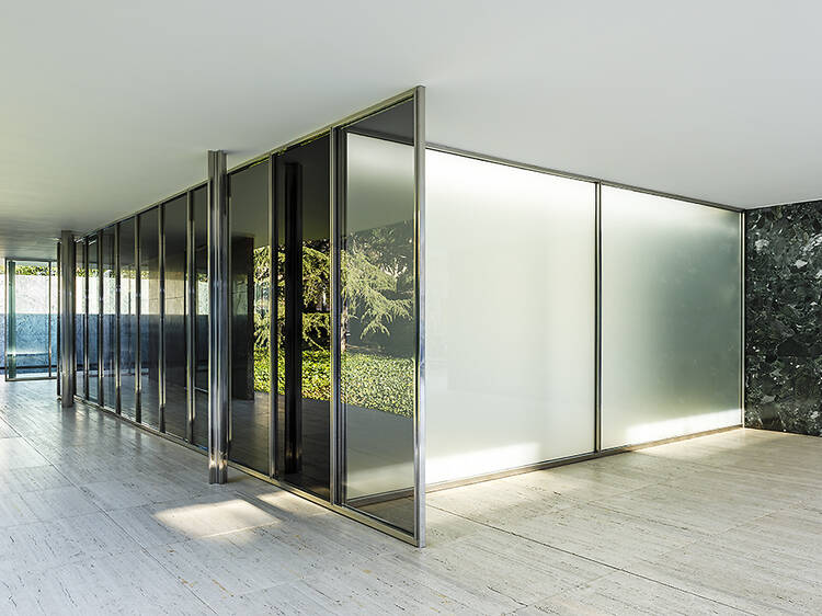 Mies van der Rohe va construir el Pavelló Alemany per a l'Exposició de 1929, no com una galeria, sinó com un espai de recepció poc moblat amb la seva marca personal, la Cadira Barcelona, tot en col·laboració amb la dissenyadora Lilly Reich. El pavelló va esdevenir un monument insígnia de l'arquitectura racionalista moderna, sobretot per l'ús revolucionari dels materials. Malgrat que el pavelló original va ser enderrocat després de l'exposició, el 1986 se'n va construir una còpia idèntica en el mateix lloc. La simplicitat del seu disseny ressalta el marbre i l'expressivitat de l'escultura de George Kolbe.