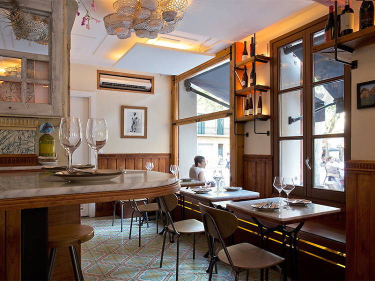 Y me la juego: es el mejor bar de Les Corts con diferencia. Con una terraza idílica en la plaza de la Concordia, El Maravillas juega con una magnífica carta de vinos, pero me decanto por los cócteles. En la barra, opera Míriam Campa, una 'bartender' que trabajó en Tirsa y con la que me quiero casar lo antes posible. De hecho, prepara el mismo gintónic que hacían en el Tirsa, un guiño a los nostálgicos, que soltarán una lagrimita cuando lo prueben. Campa tiene una muñeca privilegiado. Los cócteles son extraordinarios -¡qué Bloody Mary! -, pero también los platillos que salen de la cocina: carrillera de ternera, tartar de atún, albóndigas con papada y sepia ...