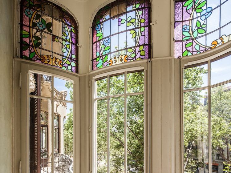 Junto al Palau Macaya, al final del paseo de Sant Joan, hay una finca modernista que, hasta hace poco, estaba abandonada. Es la Casa Dolors Alesan. Quizás os habíais fijado en sus dos tribunas llenas de vidrieras con motivos florales, o en los balcones de piedra y hierro forjado. Ahora, el edificio ha recuperado el esplendor de la época modernista gracias a la reforma que ha llevado a cabo el estudio de arquitectura Bach, que no sólo se ha dedicado a restaurar las viviendas, sino a ampliarlas. Desde fuera no lo dirías nunca, pero en la parte superior se han construido dos dúplex modernos, de 190 m² cada uno.