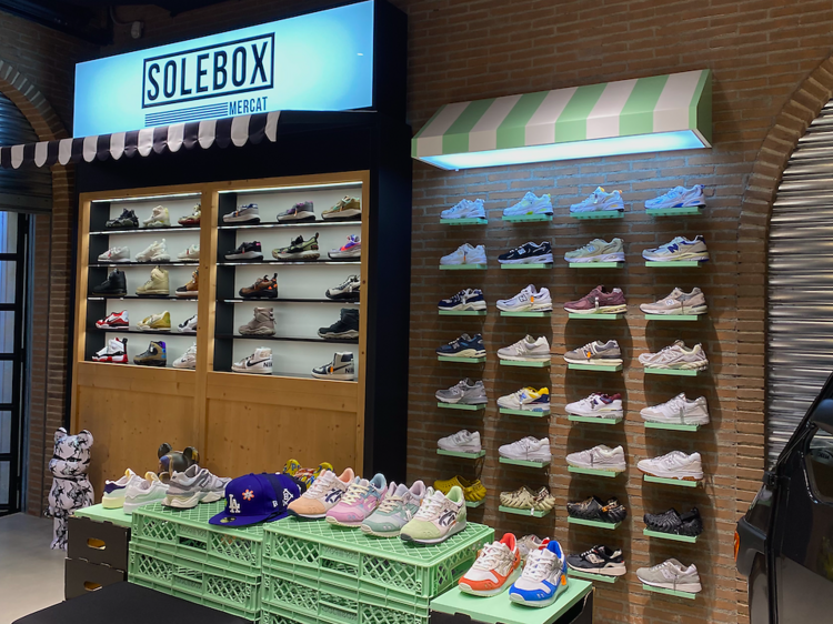 Si os pensabais que lo habíais visto todo, no es así: Solebox, una marca de zapatillas deportivas y ropa nacida en Alemania, ha escogido Barcelona para abrir una tienda de bambas inspirada en el Mercat de la Boqueria. ‘Sneakers’ exclusivas, ropa de ‘streetwear’ y accesorios, pero expuestos de una manera muy diferente: espacios abiertos distribuidos por la tienda que recrean paradas de comida de la Boqueria. Las bambas están expuestas individualmente, una por una, con los precios puestos por detrás: una presentación que transporta a una pescadería de la Boqueria, que está a cinco minutos a pie de la tienda.