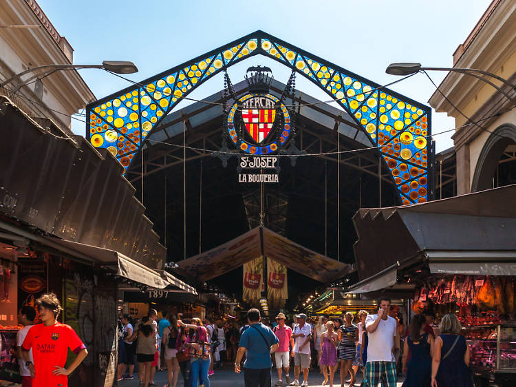 Los primeros documentos que confirman la presencia de actividad mercantil en el Pla de la Boqueria se remontan al 1200. En ese momento, los mercados estaban formados por tenderetes temporales al aire libre donde los campesinos vendían sus productos para ahorrar el impuesto de entrada de mercancías dentro de la muralla. No fue hasta el año 1836 cuando se inauguró oficialmente el Mercado de la Boqueria, convirtiéndolo en el primer mercado municipal de Barcelona. Con los años, la instalación es una de las paradas obligatorias a visitar en la Rambla, no solo porque es el mayor mercado de Cataluña, sino porque también es el que tiene la oferta alimentaria más variada. Con más de 300 paradas, el espacio reúne desde fruterías y verdulerías, hasta carnicerías y pescaderías, pasando también por tiendas especializadas en jamón ibérico o bares de mercado, entre otros. Y si bien se ha convertido en una especie de peregrinación por los turistas (actualmente, el recinto recibe entre 20.000 y 60.000 personas al día), el Mercado mantiene todavía la esencia de sus inicios gracias a algunas paradas auténticas que continúan su actividad.