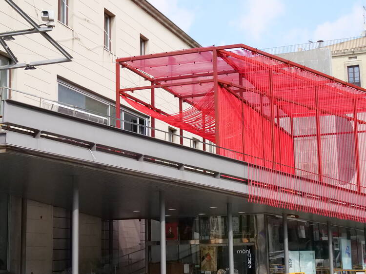 El Centre d'Arts Santa Mònica ha colocado una instalación temporal en su terraza diseñada para suavizar las condiciones climáticas durante los meses de verano, a la vez que actúa como espacio cultural. 'Teló', creada por el equipo de arquitectos formado por Marta Monlleó Rius, Eduard Rodríguez y Martínez y Jaume Xicola Pachón, es una estructura ligera de color rojo cubierta por una sucesión de cuerdas del mismo color que generan un espacio de sombra.