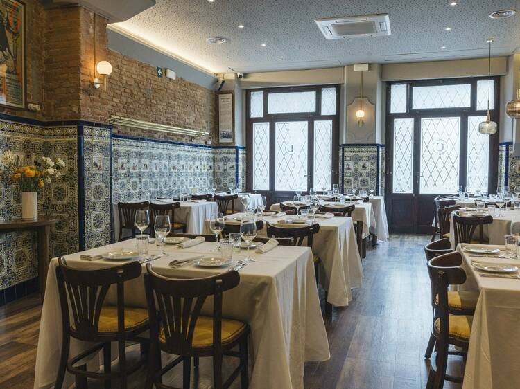 Quim Manresa y Romain Fornells realizaron muy buen trabajo con Casa Leopoldo, pero vino la pandemia. Después de una breve temporada cerrado –¡y un pequeño paréntesis como restaurante chino!– el grupo Banco de Boquerones se hizo cargo de Casa Leopoldo a principios de 2024. No han hecho grandes cambios estéticos –y tampoco podrían hacer demasiados, porque las maravillosas baldosas portuguesas, de 1929, año de apertura, son patrimonio catalogado. ¿Y qué sentido tendría cambiar un local inmortalizado en las novelas de Carvalho y que fue la segunda casa de Vázquez Montalbán y sus amigos? Pequeñas modificaciones: una mesa dedicada a Manuel Vázquez Montalbán –donde pasaba horas y horas comiendo y escribiendo– y haber erigido un salón privado de color rosa en honor a Rosa Gil. Y sobre todo convertir una de las salas del sitio en una estancia también dedicada a Manuel Vázquez Montalbán.