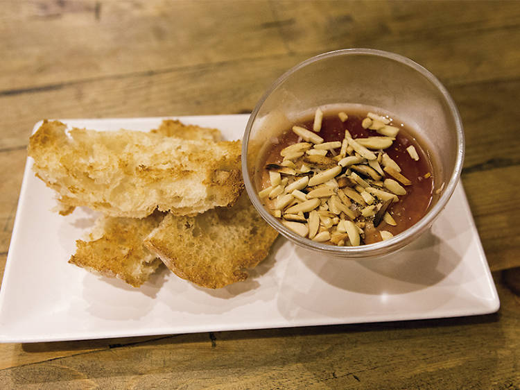 Vita Gastrobar es un lugar del que se debería hablar más: en dos años ha construido una clientela fiel y exigente en el corazón de Gracia. Su éxito reside en algo tan sencillo y obvio como cuidar y manipular lo menos posible productos de alta calidad. Una muestra de ello la tuvimos con el tartar de salmón (fresco y ahumado), con 'crème fraîche' y helado de mostaza. Seguimos con la degustación de salsas Askadinya, nombre del restaurante palestino de delante, que también regentan con éxito y sensibilidad los hermanos Nabil y Dajlala.