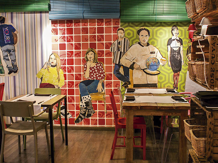 Mestres ha forjado alianzas con Gerard Piqué –sí, el del Barça–, Els Amics de Les Arts –el primer miércoles de mes hacen cenas musicales– y ahora puede ofrecer paletilla de cordero de la Vall d'en Bas en un menú de mediodía asequible y tener una barra de coctelería donde nada más entrar te sirven un cóctel de bienvenida gratis. Y vender barato, que por algo sus socios de Natrus tienen sus propios animales. Más allá de la hamburguesa, tiene una carta con platos de resistencia que son un poema cárnico: como una ensalada de pato y alcachofa, ambos de El Prat, con la alcachofa confitada con grasa de pato, un tartar de ternera con vacuno de la Vall d'en Bas cortada a cuchillo, o un tronco de cordero, chuletillas deshuesadas y servidas con una costra de hierbas y Parmentier trufado.