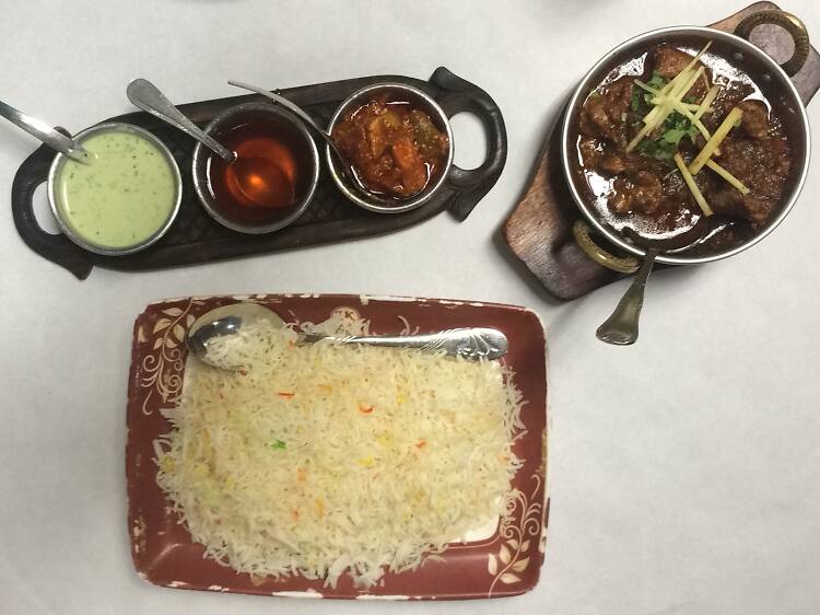 Como ha ocurrido con la china, la cocina indopakistanesa corre el riesgo de estandarizarse adaptada al pusilánime paladar occidental. No es el caso de este restaurante del Raval que destaca por mantenerse fiel a la ancestral costumbre de abrasar la lengua. Lo podréis regular con el camarero pero, si sois valientes, pedid el guiso karahi con pollo o cordero, picante nivel "como en Pakistán", y acoged esta delicia hecha de guindilla verde, crema de ajo, jengibre y una bomba de especies. Tened a mano pan o arroz para rebajar.