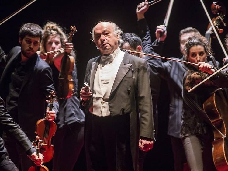 Los músicos de una orquesta están acostumbrados a seguir las indicaciones de la batuta, pero no la de un un director de teatro que juega con el humor y la gestualidad y que los hace tocar de pie, sin partituras y moviéndose. Todo un reto, para los violines pero aún más para el contrabajo y el violonchelo.