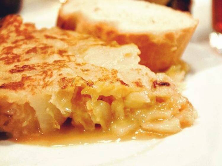 El templo tortillero de Malasaña ya tiene su versión latinera, y no podía haber abierto en otro lugar que no fuera su centro neurálgico: la Cava Baja. Hasta ahí mismo se han trasladado sus grandes hits, desde la versión clásica de patatas -muy cremosa, que no líquida-, hasta una exquisita de morcilla y pimiento caramelizado, cebolla pochada, queso brie y trufa, o incluso parmesano, tomate seco y albahaca. Pero hay más, como sus croquetas, de pollo al curry o calamares en su tinta, también presentes en la carta de Malasaña. Y un par de novedades: bravas con ajoaceite y ensaladilla rusa murciana, servida en formato 'marinera', sobre una rosquilla crujiente de pan. Y todo ello maridado con cervezas artesanas, la gran apuesta de El Pez Tortilla en La Latina, con más de 15 referencias que van rotando con mucha frecuencia.