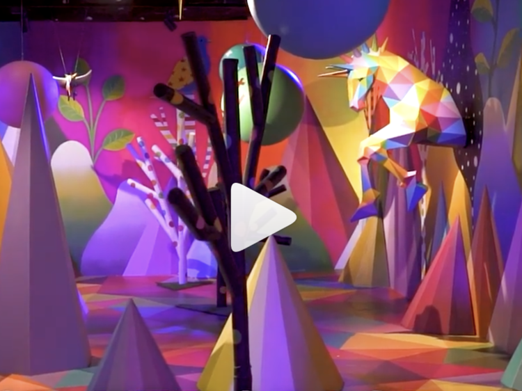 Podréis pasear por un bosque de dulces y postres tamaño gigante (al más puro estilo Hansel y Gretel), jugar con los paneles (al más puro estilo 'photocall') de la sala de Ágatha Ruiz de la Prada, meteros en el cohete de videojuegos, saltar bajo la cascada de piruletas o colarse en la sala de colchonetas (reservado solo a los más pequeños). Aunque, sin duda, una de las atracciones más divertidas y comentadas es el tobogán que lleva a la misteriosa sala de Okuda, una estructura semi transparente que conduce directa a un mundo de fantasía y sensaciones.