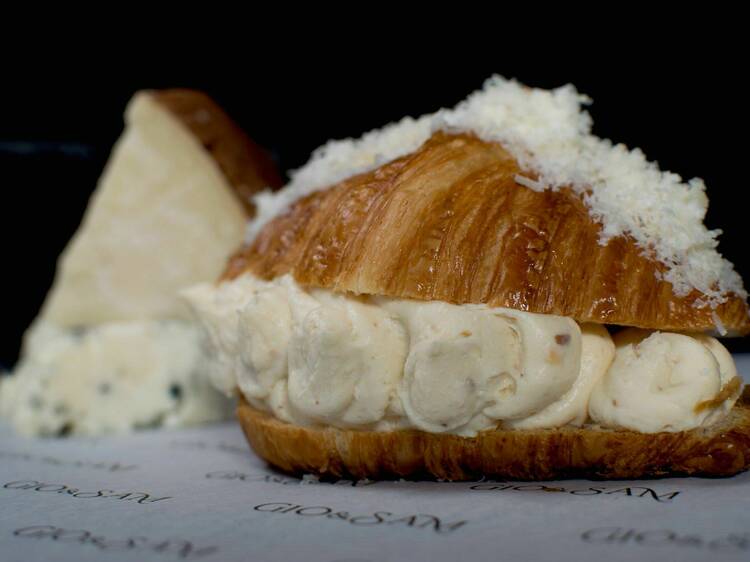 El 30 de enero se celebra el Día Internacional del Croissant. Por eso, el obrador Doble Uve y los especialistas en tartas de queso Gio&Sam han unido fuerzas para la elaboración de tres dulces muy exclusivos, una fusión entre croissant y tarta de queso. Estos bollos son muy difíciles de conseguir, ya que solo disponen de 10 unidades al día.