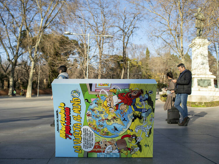 Del 23 de mayo al 23 de junio madrileñas y madrileños y visitantes de la capital se encontrarán con bancos con forma de libros enormes. Títulos que destacan por ser un éxito indispensable de la historia de la literatura o últimas novedades que arrasan entre el público o que es imprescindible conocer. Entre ellos habrá autores nacionales e internacionales y publicaciones de todo tipo de géneros literarios. Uno de esos libros en los que el público se podrá sentar (y también descargar con un código QR) es el recetario madrileño recientemente editado por el Consistorio.