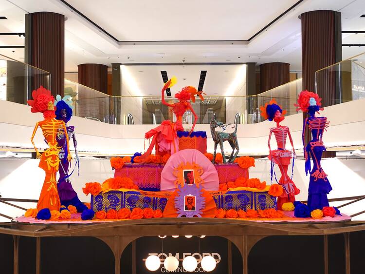 Por otra parte, el centro comercial Las Rozas Village acoge el Altar diseñado por la tienda de artesanía mexicana Enraizarte, junto a decoraciones como dos catrinas y un cráneo gigante. Además, los artistas del comercio también se han encargado de la elaboración del Altar en el Museo de América.