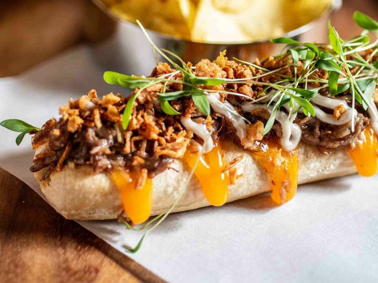 El chef Eneko Atxa (con 5 estrellas Michelin repartidas en varios locales) trae al centro de la capital, en pleno Triángulo del Arte, su formato más desenfadado y económico. El hotel Radisson RED, abierto a finales de 2022, presenta un espacio dedicado a los bocadillos. Bocadillos con firma, con autoría, pero bocadillos al fin y al cabo. Se llama DeBokata y, por supuesto, podéis comerlos en el mismo hall pero también los preparan en formato delivery y take away a través de Just Eat.