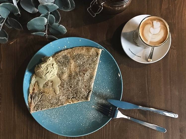 Zumos naturales, café ecológico, tartas caseras... pero las grandes protagonistas de su carta, que incluye platos frescos y bien dispuestos como varias ensaladas y un hummus delicioso, son las crepes. El argentino Daniel Añasco prepara una masa a partir de harina de trigo sarraceno (más ligera para el estómago). Tiene más de una docena de opciones saladas. Todas suenan muy apetecibles. Tendréis que elegir vosotros pero la Musgo -salmón ahumado, queso crema y rúcula- y Amapola -nutella, helado de pistacho y nueces- son firmes candidatas a arreglar cualquier mal día. Y para los queseros... la Potus: azul, emmental, brie y cabra. No os perdáis el brunch diario o su sencillo pero gustoso menú del día (plato+crepe). Si os asomáis y lo veis lleno, recordad que al fondo hay sitio (el comedor no se ve desde la calle).