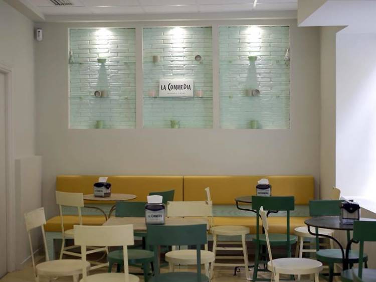 La genuina tradición del gelatto italiano está detrás de los mostradores de La Commedia, la heladería abierta en el barrio de Salamanca, muy cerca del Retiro. Los abuelos de su fundadora abrieron su primera heladería en Milán justo antes de la Segunda Guerra Mundial: La Gelateria Piermarini, todo un referente en Milán. Y La Commedia aspira a convertirse en su digno heredero aquí en Madrid. En su mostrador, una selección de helados artesanos, elaborados solo con ingredientes naturales y un buen número de propuestas veganas. Su gran apuesta son los 'sabores del paraíso', con cuatro creaciones gourmet -el helado de cremino de pistacho con avellana y chocolate, y el Red Velvet con remolacha son deliciosos-. Pero hay más: desde nocciola con I.G.P. del Piamonte, pistacho siciliano, flor di latte, amarena reale y gianduia (la genuina crema de chocolate y avellanas), a los sabores de frutas frescas, como maracuyá, banana o mango. Son todos una perdición, de lo buenísimos que están.